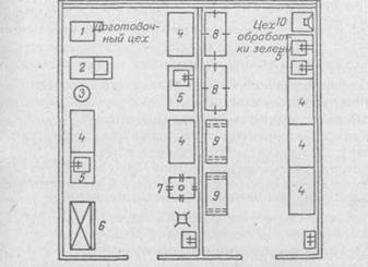 На предприятиях, работающих на сырье, зелень обрабатывается в овощном цехе, а на предприятиях доготовочных, где основной ассортимент поступает в виде полуфабрикатов, для обработки зелени организуют самостоятельный цех. В нем обрабатываются салатные, шпинатные овощи, свежие огурцы, кабачки, баклажаны, зеленый лук и т. д. Цех оснащен моечными ваннами, производственными столами разного типа, например, не только обычными рабочими столами, но очень удобны столы секционные модульные с вмонтированными ваннами. Для мойки зелени используют сетки-вкладыши с двумя ручками. Зелень после переборки раскладывают в сетки-вкладыши, помещают в ванну и промывают проточной во- дой. Ручки вкладыша облегчают выемку зелени из ванны, улучшают и ускоряют процесс промывки зелени. Примерная планировка доготовочного цеха и цеха обработки зелени приведена на схеме 13. Схема 13. Оборудование доготовочного цеха и цеха обработки зелени: 1 — мясорубка; 2 — универсальный привод; 3 — разрубочный стул; 4— стол производственный; 5—ванна моечная; 6 — холодильный шкаф; 7— ванна моечная передвижная; 8— стеллаж передвижной; 9 — подтоварник решетчатый; 10 — стол для чистки лук? Организация труда работников доготовочного цеха такая же, как и организация труда в мясо-рыбном цехе, а в цехе обработки зелени — как в овощном цехе предприятия небольшой мощности. Вопросы для контроля знаний 1.В чем состоит технологический процесс обработки мяса? 2. В чем отличительная особенность в организации обработки мяса в крупных заготовочных предприятиях от орга-