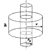 поверхности выбираем в форме коаксиального прямого цилиндра, как показано на рисунке. По теореме Гаусса для случая