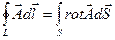 выражающему широко используемую в математических преобразованиях теории поля теорему Стокса. Теорема Стокса связывает линейный интеграл от произвольного вектора (интеграл слева берется по произвольному замкнутому контуру) с поверхностным интегралом от ротора этого вектора (интеграл справа берется по произвольной поверхности, натянутой на этот контур).