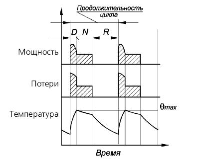 Относительная продолжительность включения (ПВ) - это отношение времени работы под нагрузкой (Тнг ) ко времени цикла (Тц), которое равно сумме времени работы под нагрузкой и паузы (Тп):