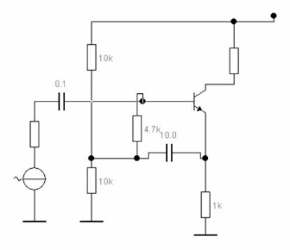 Пример следящей связи, увеличивающей сопротивление и уменьшающей влияние входной емкости: