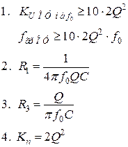 Для этого фильтра добротность R4=R3 Расчет фильтра с параллельной обратной связью и нерегулируемым Дано: