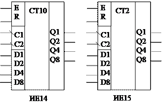 ИЕ8 6-разрядный двоичный делитель числа входных импульсов с перестраиваемым коэффициентом деления или программируемый преобразователь кодов в число импульсов. ИЕ14 (ИЕ15)