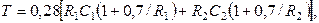 Устройство на рис.10.6. формирует выходной импульс, длительность которого определяется выражением Мультивибратор К155АГЗ имеет внутреннюю задержку, равную 30 нс. Вход В является входом триггера Шмитта. Возможна различная организация взаимного запуска мультивибраторов: по входу В первого мультивибратора - сигналом с инверсного выхода второго, по входу А первого мультивибратора - сигналом с прямого выхода второго или другие комбинации. Частоту генератора с перекрёстными связями вычисляют по формуле: