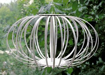 На рис. Электроэффлювиальная люстра типа ЭЭФФ-5: 1 - кольцо, 2 - подвеска; 3 - растяжка; 4 - штырь; 5 – хомут для кольца; 6 - хомут; 7 - хомут для подвески; 8 – высоковольтный изолятор, 9 - винт; 10 - штырь; 11 - винт; 12 - планка. Все аэроионизаторы А. Л. Чижевского выполнялись по простой схеме. Она включала в себя высоковольтный источник отрицательного напряжения, состоящий из сетевого повышающего трансформатора, к выходной обмотке которого через умножитель напряжения, выполненного на кенотронах, и токоограничивающий резистор высоковольтным проводом подключался электроэффлювиальный излучатель. При этом выходное напряжение источника варьировалось от 20 кВ до 110 кВ. Высоковольтные генераторы имели внушительные габариты и массу. Применение выпрямительных электровакуумным диодов (кенотронов) приводило к большому потреблению электрической энергии и малой эффективности ее преобразования. Конструкции электроэффлювиальных излучателей также были громоздки и требовали специальных мер по установке в помещении Достижения современной электроники позволили многократно уменьшить массогабаритные показатели электроэффлювиальных аэроионизаторов, а также существенно снизить потребление электрической энергии. При этом их эффективность существенно увеличилась Рассмотрим несколько конструкций современных ионизаторов, которые выпускаются в России серийно. На рисунках приведены несколько конструкций электроэффлювиальных излучателей ионизаторов «Элион» завода «Диод» (г. Москва).