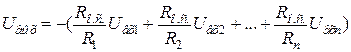 При равенстве входных сопротивлений R 1= R 2= R Uвых=-