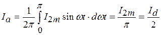 Ud – функция четная, кроме основной имеет четные гармоники. Амплитуда гармонической составляющей порядка n = 2, 4, 6,....