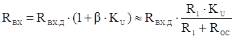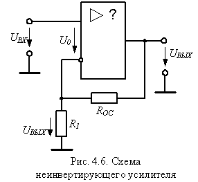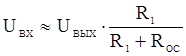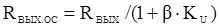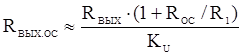 При КU →∞ входное сопротивление стремится к бесконечности. Из формулы (4.2) видно, что входное сопротивление неинвертирующего усилителя довольно большое. Отметим, что значение RВХ.ОС у неинвертирующего усилителя значительно больше, чем у инвертирующего. Выходное сопротивление неинвертирующего усилителя: