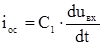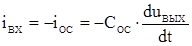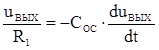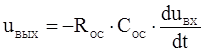 При замене резистора R1 конденсатором C1 схема рис. 4.5, б превращается в схему дифференциатора (рис. 4.9). Так как UВХ =UС, a UВЫХ = –RОС∙iОС, то, учитывая, что