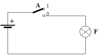 Логическая функция может быть задана четырьмя способами: 1) словесно (описанием ситуации); 2) алгебраическим выражением; 3) таблицей истинности; 4) электрической схемой, состоящей из контактов переключателей. Например: 1. Лифт можно вызвать, если закрыты двери лифта на первом этаже и на втором этаже и на третьем этаже. 2. Если закрытые двери на первом этаже обозначить как А = 1, на втором как В = 1, на третьем как С = 1, возможность вызвать лифт обозначить как F = 1, а логическую функцию И обозначить знаком умножения "×", то алгебраическое выражение будет иметь вид: F = A×B×C