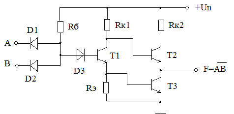 Рис. 6.4. Схема простейшего логического элемента диодно–транзисторной логики