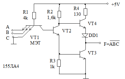 Рис. 7.1. Схема простейшего логического элемента транзисторно–транзисторной логики