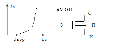 Рис.8.2. Зависимость тока Iс стока от напряжения затвор–подложка Uз для транзистора с n проводимостью подложки
