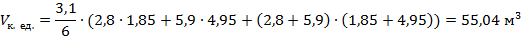 -один общий котлован, -траншеи, -под каждый фундаментный блок разрабатывается отдельный котлован. Вариант выбирается из условия минимума земляных работ. Рассматривая полученные размеры одиночного котлована для фундамента и план расположения фундаментов с шагом 9,0 м и пролетом 12,0 м, в данном случае самым рациональным вариантом является отдельный котлован под каждый фундаментный блок. Объем котлована равен: