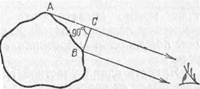 Рис. 159. Соотношение между действительной излучающей поверхностью (АВ) и поверхностью, видимой по данному направлению (ВС) *) Приставка тера образована от греческого слова «терас» — чудовище. света, рассчитанную на единицу площади видимой поверхности источника. Эта световая величина называется яркостью источника; мы будем ее обозначать буквой L. Если источник имеет силу света I и площадь видимой светящейся поверхности его есть s, то яркость этого источника равна