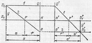 но S '1 S '2= y ', H'Q'=HQ=S 1 S 2 =y, F'H'=f.' Таким образом, обозначив через х' расстояние от заднего фокуса до изображения, находим