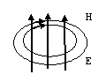 Переменное электрическое поле Максвелл назвал током смещения, так как оно, подобно обычному току, вызывает магнитное поле. Итак, наличие в некоторой точке пространства переменного магнитного или электрического поля вызывает образование совокупности переменных электрического и магнитного полей, называемой электромагнитным полем. Распространение электромагнитного поля в пространстве называется электромагнитной волной. Дифференциальные уравнения Максвелла для плоской электромагнитной волны.
