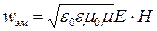 Плотность потока энергии электромагнитной волны описывается вектором Умова-Пойнтинга. Его значение равно произведению объемной плотности энергии электромагнитного поля на скорость распространения волны и равно ЕН.