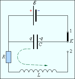 Когда ключ K находится в положении 1, конденсатор заряжается до напряжения Закон Ома для замкнутой RLC-цепи, не содержащей внешнего источника тока, записывается в виде