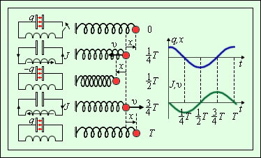 Сравнение свободных колебаний груза на пружине и процессов в электрическом колебательном контуре позволяет сделать заключение об аналогии между электрическими и механическими величинами. Эти аналогии представлены в таблице 1.
