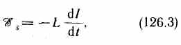 т. е. индуктивность соленоида зависит от числа витков соленоида N, его длины l, площади S и магнитной проницаемости m вещества, из которого изготовлен сердечник соленоида. Можно показать, что индуктивность контура в общем случае зависит только от геометрической формы контура, его размеров и магнитной проницаемости той среды, в которой он находится. В этом смысле индуктивность контура — аналог электрической емкости уединенного проводника, которая также зависит только от формы проводника, его размеров и диэлектрической проницаемости среды (см. §93). Применяя к явлению самоиндукции закон Фарадея (см. (123.2)), получим, что э.д.с. самоиндукции