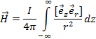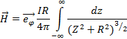 Результирующую напряженность магнитного поля в точке P найдем проинтегрировав dH по всей длине провода