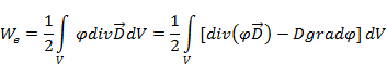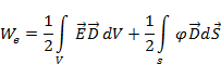 Если поверхность S ограничивающая объем V, удалена на большое расстояние, то вторым интегралом в (2.17) можно пренебречь, так как потенциал j уменьшается с расстоянием как r-1 а поле E как r-2. В явном виде это следует из закона Кулона (1.1) и для потенциала (1.2). Поверхность же интегрирования возрастает пропорционально второй степени r. Поэтому подынтегральная величина в (2.17) на поверхности сферы пропорционально в r-1 и следовательно интеграл стремится к нулю при r стремящемся к бесконечности. Таким образом, работа (энергия) при сближении зарядов в электростатическом поле оказывается выраженной соотношением