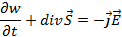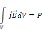 Вектор S (2.23) имеет размерность Вт/м2 и следовательно представляет собой плотность потока мощности или энергию в единицу времени электромагнитного поля. Поэтому, второй интеграл в (2.26) равен потоку энергии через произвольную поверхность. В правой части (2.26) под интегралом стоит объемная плотность тепловой энергии за единицу времени, в которую необратимо превращается часть энергии электромагнитного поля при неизбежном (с физических позиций) токе среде. Поэтому правую часть (2.26) можно рассматривать как работу, совершаемую электромагнитным полем в объеме V над зарядами, определяющими ток в среде. Иначе говоря, интеграл в правой части (2.26) равен тепловой мощности P, возникающей в объеме V при взаимодействии поля с веществом. Обозначим