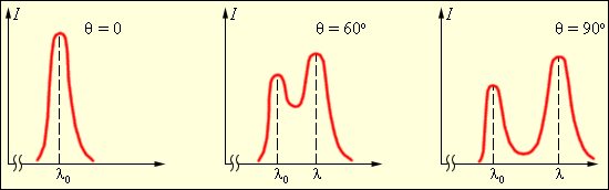 где Λ = 2,43·10–3 нм – так называемая комптоновская длина волны, не зависящая от свойств рассеивающего вещества. В рассеянном излучении наряду со спектральной линией с длиной волны λ наблюдается несмещенная линия с длиной волны λ0. Соотношение интенсивностей смещенной и несмещенной линий зависит от рода рассеивающего вещества.