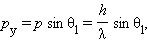 где p – модуль полного импульса электрона, равный, согласно де Бройлю, h / λ. Величина p при прохождении электрона через щель не меняется, т. к. остается неизменной длина волны λ. Из этих соотношений следует