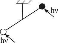 | | На легкой нерастяжимой нити подвешено коромысло с двумя лепестками, один из которых абсолютно черный, а другой – абсолютно белый. Свет на лепестки падает по нормали к их поверхности. При освещении установки…