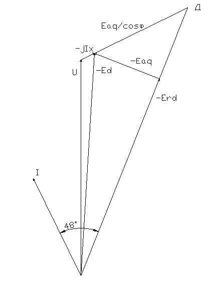 - Для дальнейшего построения векторной диаграммы и определения результирующей ЭДС по продольной оси Еrd и угла y, определяем МДС:
