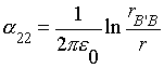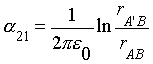 Рис. 9 На рис. 9 изображена расчетная система в сечении перпендикулярно проводам. В соответствии с методом зеркальных изображений влияние земли на распределение потенциалов может быть заменено на влияние дополнительных проводов A' и B', зеркально отображающих контактную сеть A и смежный провод B и имеющих противоположные по знаку заряды - tкt на единицу длины проводов по сравнению с зарядами исходной системы. В задаче с зеркальными изображениями земли уже нет, а есть четыре провода в безграничном пространстве; электрическое поле в такой системе совпадает с электрическим полем исходной системы в верхнем полупространстве над землей вне проводов. Для одиночного длинного (чтобы не учитывать краевые эффекты) провода потенциал любой точки пространства определяется как следствие теоремы Гаусса по известному выражению (например, в учебнике [10])
