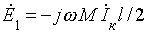 Формула (9) не учитывает экранирующего действия рельсов и других протяженных проводников. При сложном сближении отдельные напряжения, наводимые на участках косого или параллельного сближения, суммируются для вычисления напряжения в начале линии, поскольку соответствующие источники ЭДС включаются последовательно друг с другом. 4.2. Взаимная индуктивность между контактной сетью и смежным проводом Понятие взаимной индуктивности вводится в электротехнике как следствие закона электромагнитной индукции и закона полного тока. Для двух замкнутых контуров из тонких проводов, один из которых (первый) создает магнитное поле, а второй находится в этом поле, так что его площадку пересекает магнитный поток Φ от первого контура, взаимной индуктивностью называют магнитный поток Φ внутри второго контура, создаваемый током 1 А первого контура. При синусоидальных токах во втором контуре при этом наводится ЭДС, равная - jω Ф, то есть равная - jωM I к по определению взаимной индуктивности. Возможностью простого вычисления ЭДС и определяется ценность величины взаимной индуктивности M.