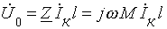 4.1. Магнитное влияние при разных режимах работы смежной линии Для анализа влияния режима смежного провода по отношению к земле рассмотрим те же три случая, что и для электрического влияния (рис. 7а, 7б, 7в). Чтобы оставить только магнитное влияние, предположим, что напряжение в контактной сети отсутствует, U к=0 (короткое замыкание). Емкости связи можно при этом не учитывать, поскольку они обычно существенно меньше емкостей провода на землю. На рис. 10 изображена двухячейковая схема для этого варианта, в которой нужно последовательно предполагать изолированный смежный провод, заземленный в начале смежный провод и заземленный с двух концов смежный провод.