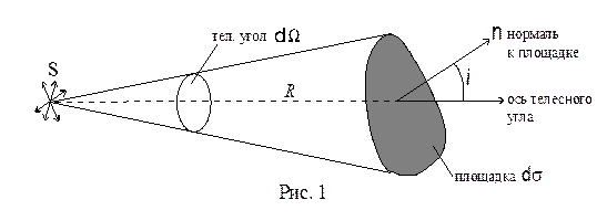 За единицу светового потока принимают люмен (лм) – световой поток от точечного источника силой света 1 кд, распространяющийся в пределах телесного угла 1 ср. 3. Освещенность. Физическая величина, равная световому потоку, приходящему на единицу площади освещаемой поверхности: Е= dФ/ds Освещенность измеряется в люксах (лк): 1 лк =1 лм/м2. Освещенность площадки d , создаваемую точечным источником (т.е. таким источником, размеры которого малы по сравнению с расстоянием до точки наблюдения), можно представить следующим образом (рис. 1):