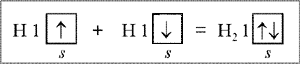 Для атома водорода, т. е. для системы «один протон и один электрон», спин электрона не влияет на энергетические характеристики атома, но без представления о спине не удается объяснить образования молекулы водорода Н2 из двух атомов водорода. Молекула водорода образуется, если сталкивающиеся атомы водорода имеют: энергию активации, достаточную для преодоления сил отталкивания одноименно заряженных электронных оболочек; в момент столкновения третью частицу, забирающую избыточную энергию молекулы; противоположные по знаку спины (спиновые квантовые числа) двух электронов, что в данный момент является самым главным. Только атомы с двумя противоположными спинами способны взаимодействовать друг с другом (рис. 1).