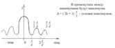 На рисунке приведен дифракционный спектр распределения интенсивности света от одной щели. Положение дифракционных максимумов зависит от длины волны λ. Поэтому рассмотренная выше теория дифракции имеет место лишь для монохроматического света. При освещении щели не монохроматическим, а белым светом центральный максимум имеет вид белой полоски (он общий для всех длин волн), а боковые максимумы радужно окрашены, т.к. положение максимума различно для разных длин волн. Красная часть расположена снаружи от центрального максимума. Картина расплывчата, с уменьшением ширины щели расстояние между максимумами увеличивается. С увеличением ширины щели, наоборот, расстояние между максимумами уменьшается, и они сливаются в полосу. Пример: сощурить глаза и смотреть на удаленный источник света. В центре получается резкое изображение источника света, а по направлению к векам глаз – длинные лучи.