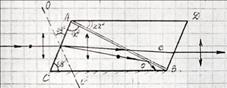 I. Поляризационные призмы построены по принципу полного отражения одного из лучей от границы раздела, в то время как другой луч с другим показателем преломления проходит через эту границу. Например: призма Николя. Представляет собой двойную призму из исландского шпата, склеенную вдоль линий АВ канадским базальтом с n=1,55