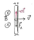 На каждый электрон в движущейся перемычке действует сила Лоренца