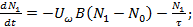 Т.к. Причина: В поток возвращается лишь часть квантов при переходе с верхнего на нижний уровень, а именно: испущенные в результате вынужденных переходов кванты. А кванты, испущенные спонтанно, в поток не возвращаются. Если же нарушить равновесие системы атомов, то нарушим равновесие Больцмана и добьёмся условия: Усиления не будет: Пусть N – полная концентрация атомов, т.е.: N= Изменение заселённости верхнего уровня происходит за счёт спонтанных и вынужденных переходов: