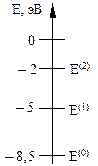 561. (С). Предположим, что схема энергетических уровней атомов некоего вещества имеет вид, показанный на рисунке, и атомы находятся в состоянии с энергией Е(1). Электрон, движущийся с кинетической энергией 1,5 эВ, столкнулся с одним из таких атомов и отскочил, приобретя некоторую дополнительную энергию. Определите импульс электрона после столкновения, считая, что до столкновения атом покоился. Возможностью испускания света атомом при столкновении с электроном пренебречь.
