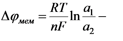 Здесь 2. Мембранный потенциал. В рассматриваемом примере пористую перегородку заменим полупроницаемой мембраной, пропускающую только катионы – положительно заряженные ионы (это может быть мембрана с большой концентрацией фиксированных отрицательных ионов).