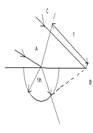 В этом построении используются лучевые поверхности т к для получения фронта плоской волны по правилу Гюйгенса проводят пл-ти, касательную к пов-ти Гюйгенса, а фронт волны касателен к лучевой пов-ти (рис1). 1. Построение Гюйгенса для положительного кристалла (V0>Ve, n0<ne), оптич. ось кот-го направлена под произвольным углом к пов-ти кристалла и лежит в пл-ти падения. Пусть АС-участок волнового фронта падающей волны, отрезок СВ принимается за единицу (рис2).