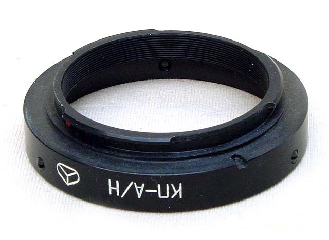 Следущий тип крепления — резьба М42 для зеркальных аппаратов Зенит/Praktica. Диафрагма с ручной установкой или автоматическая, в последнем случае требуется фиксация привода в нажатом состоянии. Тут есть три варианта развития событий: 1. Переходное кольцо М42-Н(Nikon-F) — в связи с разностью рабочих отрезков (М42 — 45.5мм, Nikon-F — 46.5 мм) не в пользу Nikon, к тому же с добавляющейся толщиной переходника, мы лишаемся фокусировки на бесконечность:( Например у легендарного Гелиоса-40 (85/1,5) безконечность оказывается на 7-8 метрах.... 2. Переходное кольцо М42-Н(Nikon-F) с линзой — помогает сфокусироваться на бесконечность, но тут есть три подводных камня: линза ухудшает оптические свойства объектива и меняет его схему, а так же обычно работает как телеконвертер увеличивая изображение в 1,1-1,3 раза в зависимости от производителя, и многие объективы с выступающей задней линзой упираются в переходник не сфокусировавшись. Данные переходные кольца бывает не дают бесконечности на широкоугольных объективах, тк скорей всего их расчитывают для фокусных от 50 и более. 3. Сменный хвостовик КП-А/Н — предназначен для замены сменных хвостовиков на объективах с индексом «А» в названии. Изначально данный хвостовик расчитывался на возможность замены с резьбы М39 на резьбу М42 и наоборот, но потом завод Арсенал выпустил Киев-17(20) и разработал хвостовик на него, и он выпускался длительное время вплоть до середины 90-х годов. До сих пор иногда встречаются в продаже новым со складских запасов, и конечно же б/у, пользуется неизменным спросом и ростом цены на него, в настоящее время цена подобралась уже к отметке в 600-700 р. Замена производится путем выкручивания 3 винтов сбоку:
