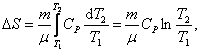 | Таким образом, изменение энтропии ΔS1-2 идеального газа при переходе его из состояния 1 в состояние 2 не зависит от вида перехода 1 - 2. Каждый из изопроцессов идеального газа характеризуется своим изменением энтропии, а именно: