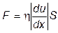 где h- коэффициент вязкости, Согласно второму закону Ньютона, взаимодействие двух слоёв с силой F можно рассматривать как процесс, в ходе которого от одного слоя к другому передаётся в единицу времени импульс, по величине равный F. Поэтому уравнение вязкости можно представить в виде