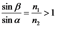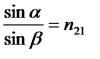 4) закон преломления: луч падающий, луч преломленный и перпендикуляр, проведенный к границе раздела в точке падения, лежат в одной плоскости; отношение синуса угла падения к синусу угла преломления есть величина постоянная для данных сред: