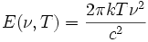где Попытка описать излучение абсолютно чёрного тела исходя из классических принципов термодинамики Uвн=3/2kT и электродинамики приводит к закону Рэлея — Джинса: Эта формула предполагает квадратичное возрастание спектральной плотности излучения в зависимости от его частоты.