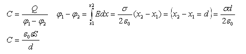 Энергия заряженного плоского конденсатора Eк равна работе A, которая была затрачена при его зарядке, или совершается при его разрядке.